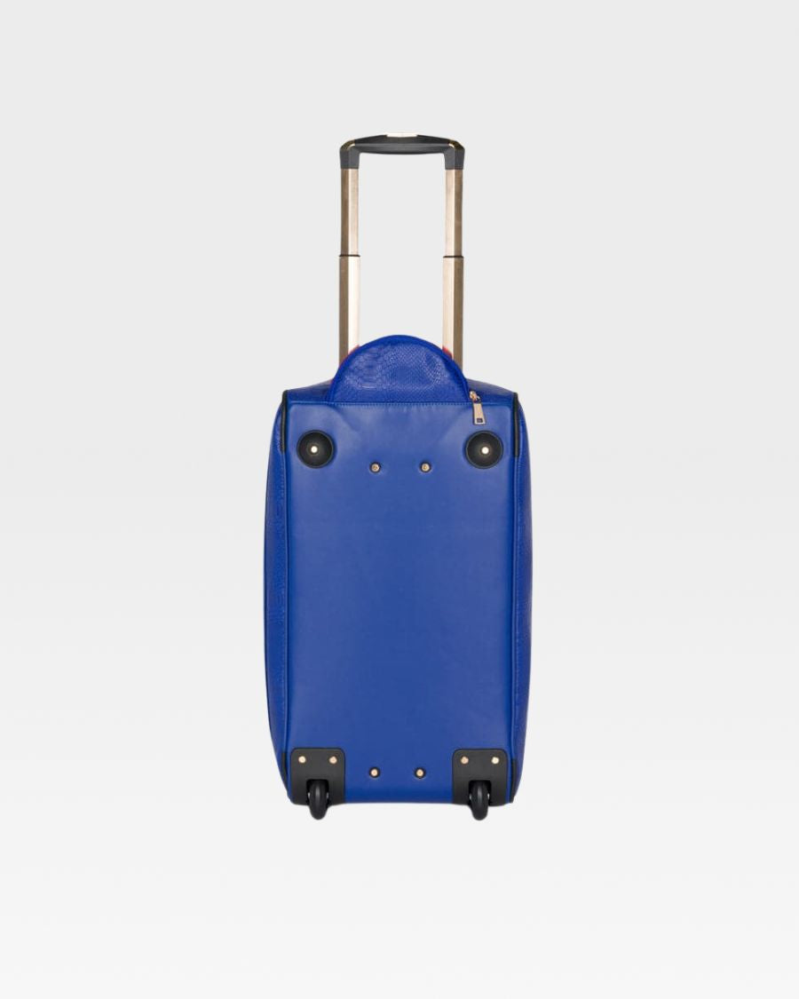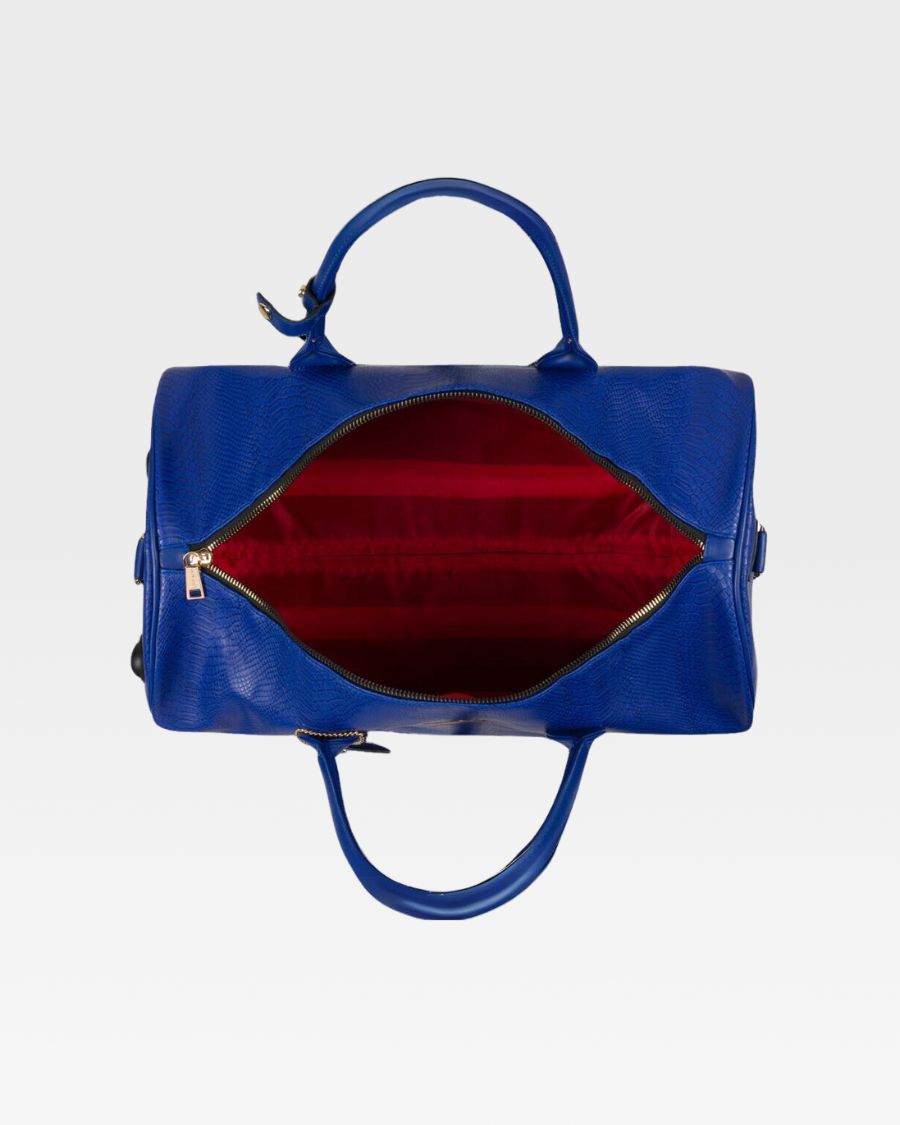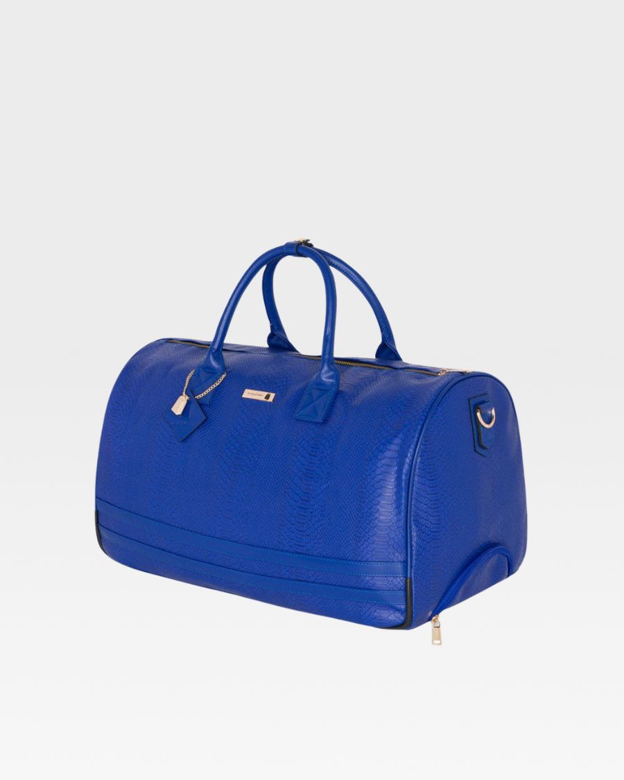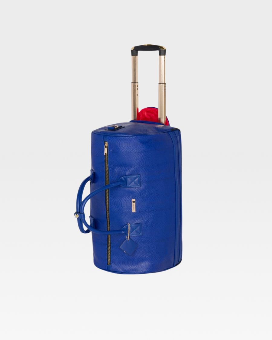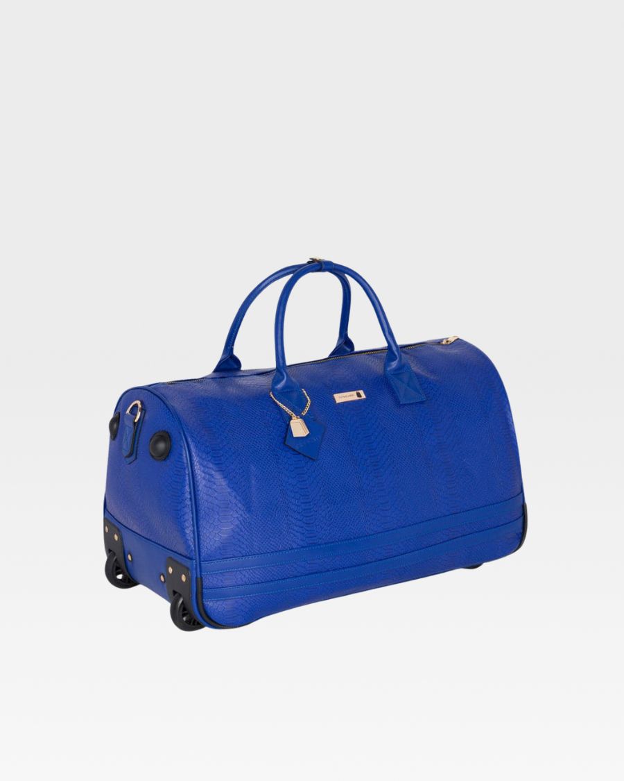 Meet your ultimate travel duo: the Royal Blue Tombstone Backpack and Rolling Duffle Bag Bundle Set. Perfect for adventurers and urban explorers, this set features a trendy faux snakeskin pattern. The Tombstone Backpack, crafted from high-quality vegan leather, includes a spacious main compartment, padded laptop sleeve, and multiple pockets. The rolling duffle bag offers easy mobility with sturdy handles, ensuring smooth travel with ample storage.