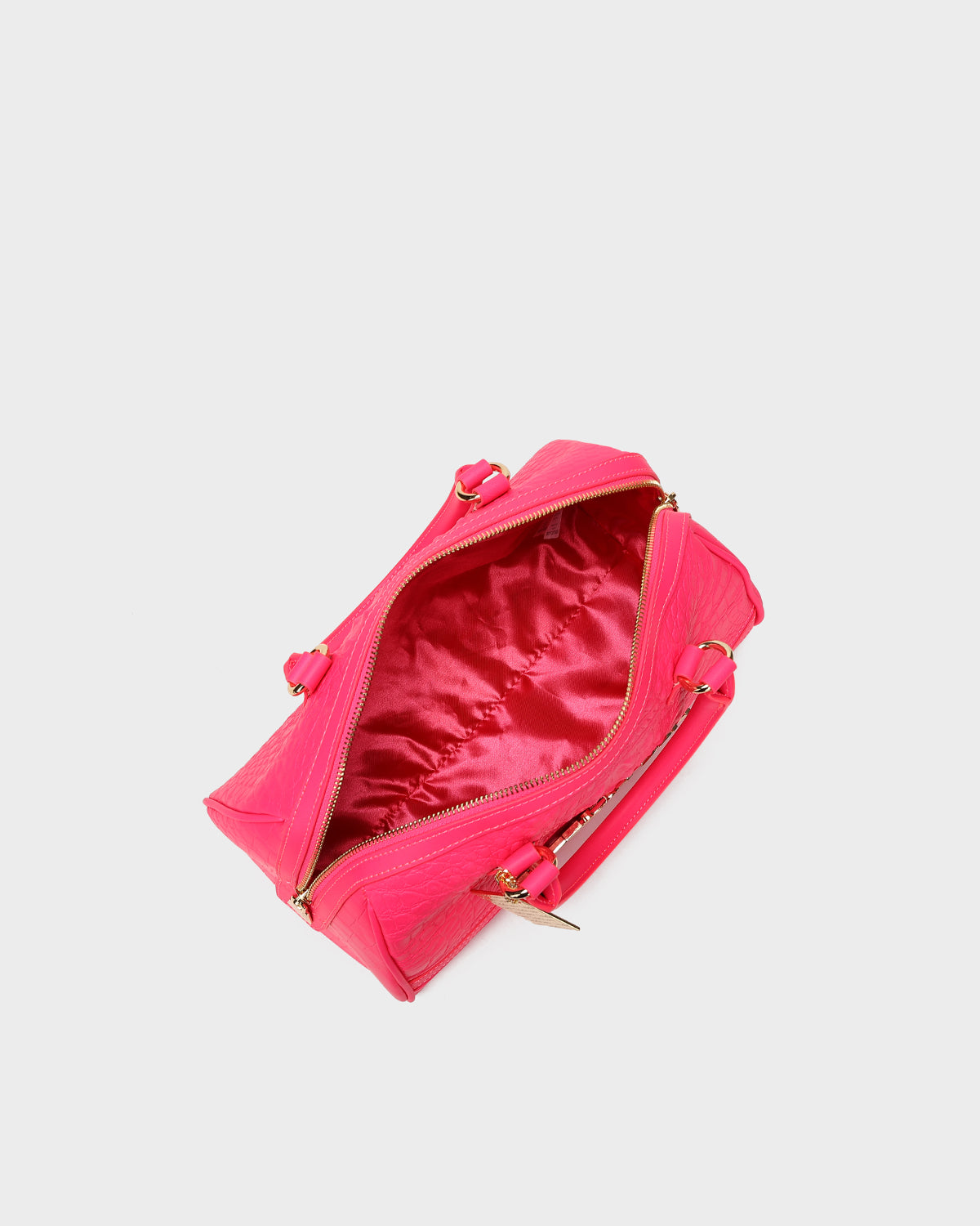 The Couture Italy Purse is a stunning and eye-catching accessory that will elevate any outfit. Crafted from luxurious faux leather, this purse features a distinctive quilted design that adds texture and dimension. The metallic accents and gold-toned hardware create a sophisticated and glamorous look. The purse features a top zip closure, double top handles, and a detachable shoulder strap for versatile carrying options.