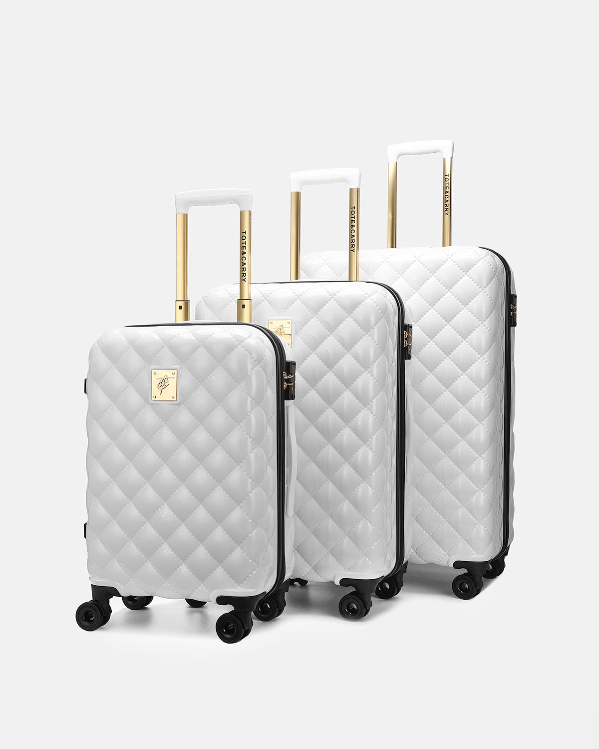 The Diamond Stitch Luggage Set is the perfect companion for your next travel adventure. This stylish set includes three suitcases in different sizes, all featuring a luxurious diamond-quilted pattern and durable hard-shell construction. The spacious interiors provide ample packing space, while the smooth-rolling wheels make transportation a breeze.