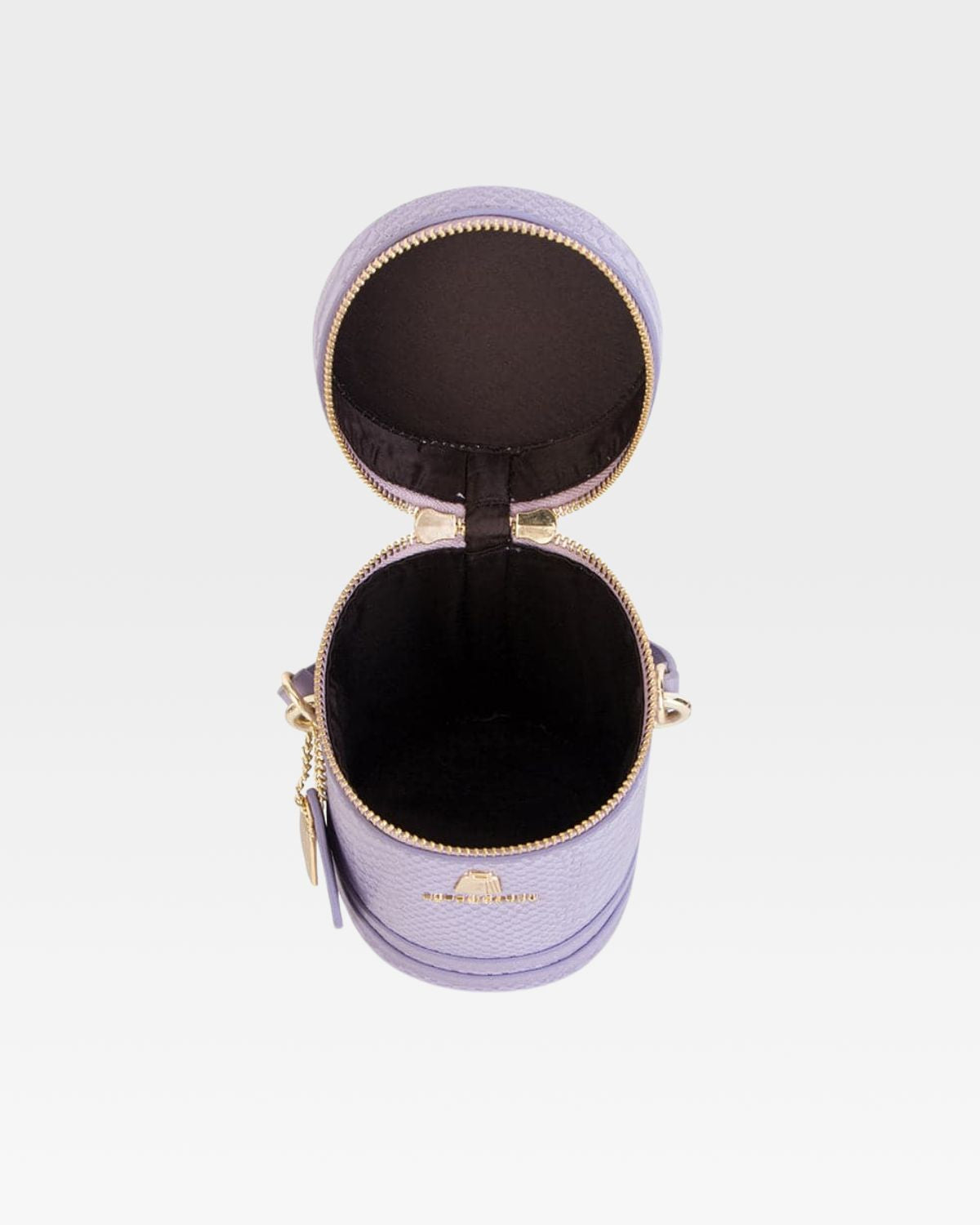 Meet your new favorite statement accessory, the Tote&Carry Mini Barrel Purse in lovely Lavender! This uniquely shaped cutie packs major style into a compact, cylindrical form. Rocking a chic faux snakeskin texture and a soft lavender hue, it's perfect for adding a pop of trendy color and luxurious feel to your look. The distinctive barrel design is fun yet sophisticated, finished with gleaming gold hardware for extra flair. Ideal for keeping essentials close when you're traveling light and turning heads, it’s a must-have mini that embodies fun, functional fashion.