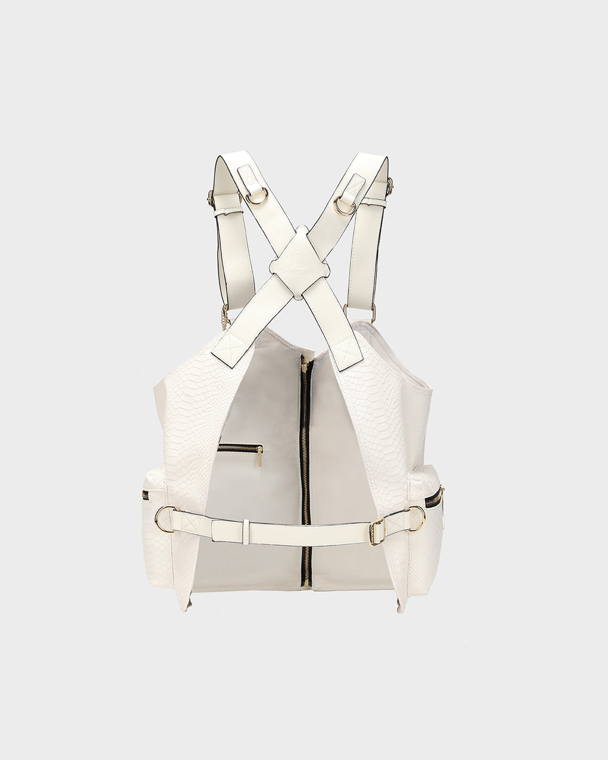 Introducing the White Tactical Leather Vest. This modern vest is perfect for both casual and formal occasions, combining fashion and function for unbeatable style. Designed with the latest trends, it ensures optimal comfort and durability. Ideal for carrying keys, wallet, checkbook, credit cards, and other small personal belongings, it¡¯s the perfect vest for work, errands, or travel.?